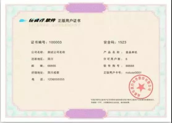 (正版用户证书样图)
