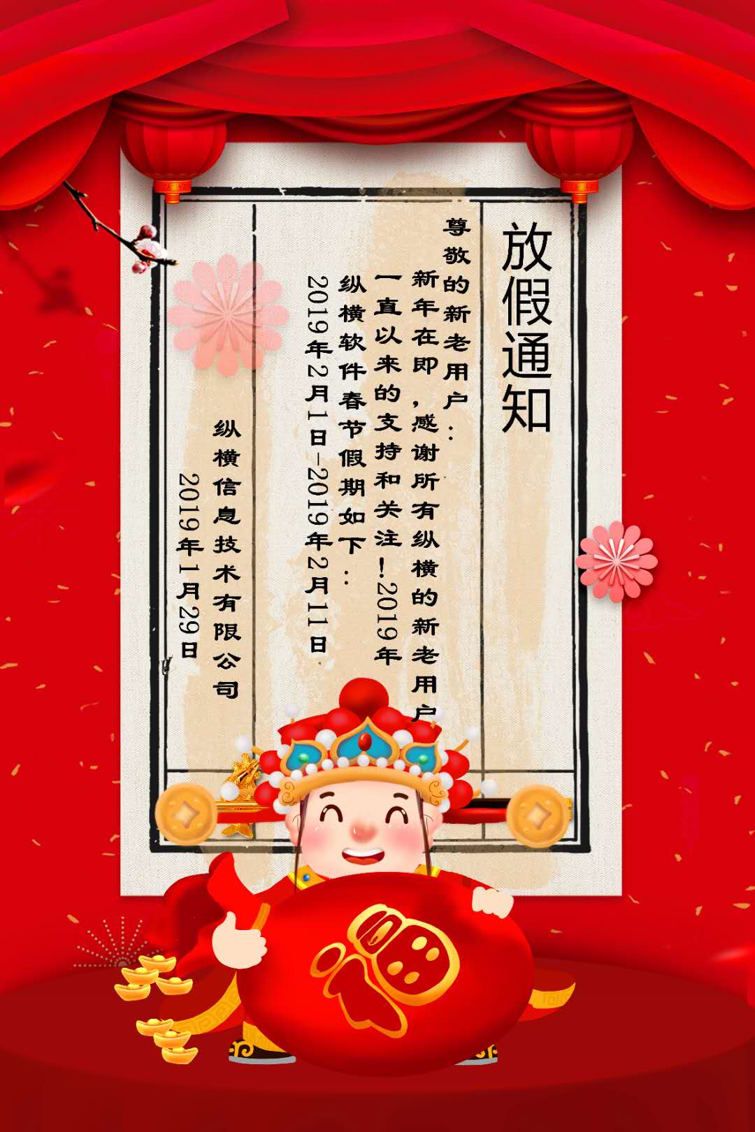 放假通知|纵横软件-杭州管家婆2019春节放假通知