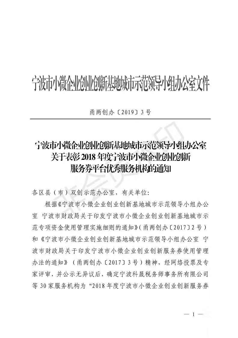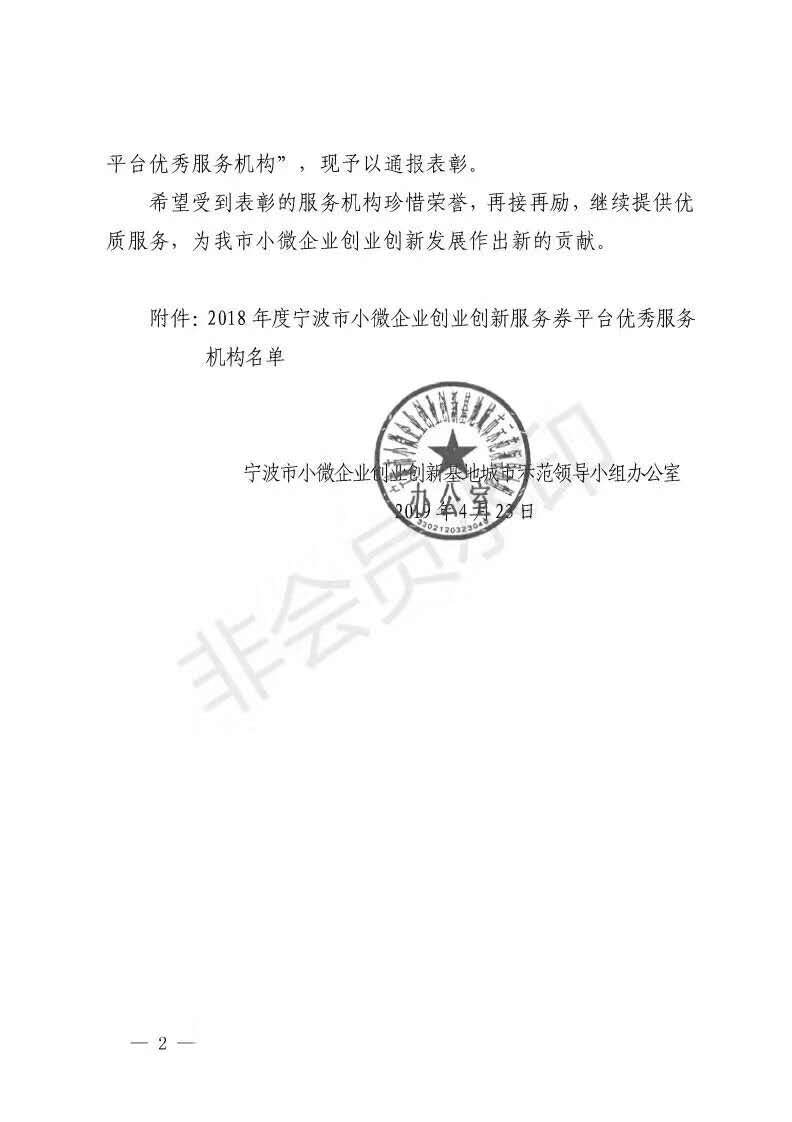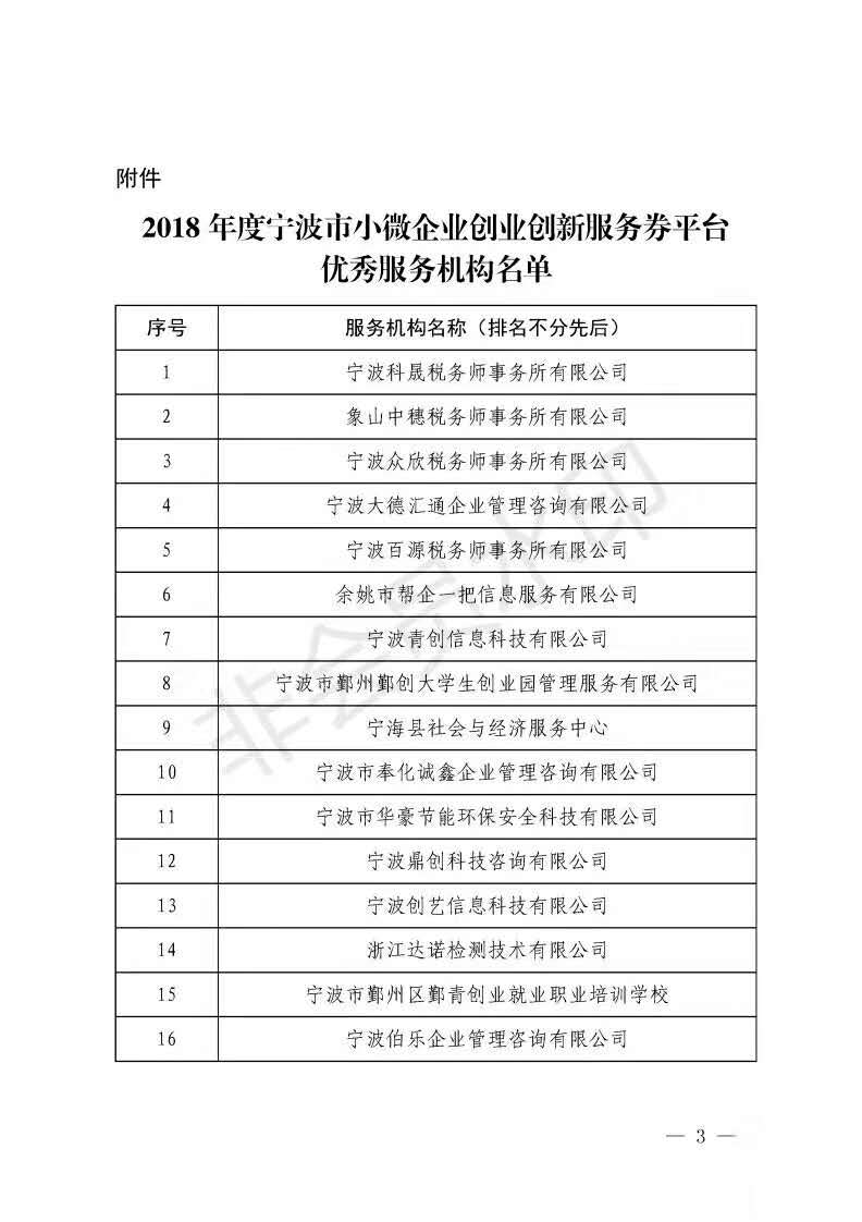 3.宁波总公司荣获2018年度宁波市小微企业创业创新服务券平台2018年优秀服务机构更可靠