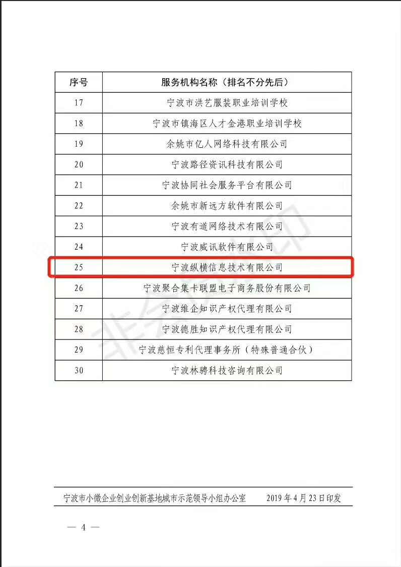 祝贺《纵横软件》成为宁波市小微企业创业创新服务券平台优秀服务机构