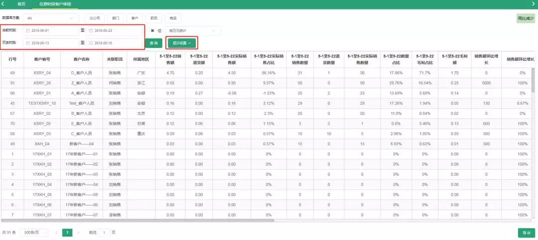 2.任我行企业智慧经营管理系统提供任意两个时段的客户、产品数据体检,环比增长一目了然;