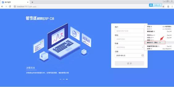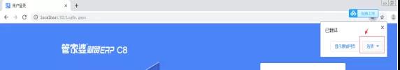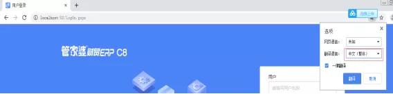 1 用谷歌浏览器登录C8,在登录界面蓝色区域任意位置点击鼠标右键——在弹出选项框中找到“翻译中文(简体)”按钮,如图: