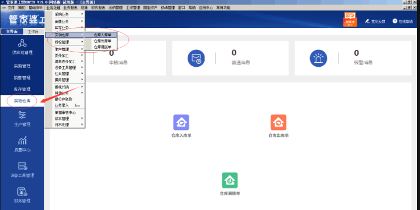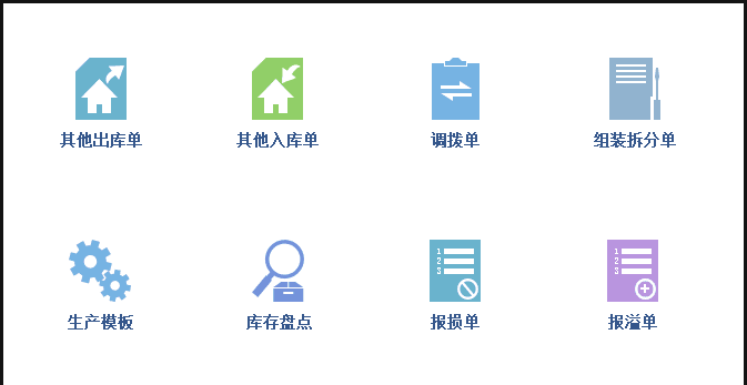 管家婆工贸系列产品,针对生产型企业仓库管理出具了完整的解决方案,面向企业库存管理,可以支持对存货的出入库、调拨业务、组装与拆分、盘点业务及盈亏差异处理等过程进行管理。提供完整的库存报表,可查询库存明细、追溯成本构成原因、进行库存上下限的报警以及畅/滞销商品查询;管家婆工贸面向企业的实物仓库管理,能够对仓库的实际存货出库,入库以及仓库质检的调拨业务等过程进行管理,提供货位管理,完整仓库报表,可查询仓库存货分布,仓库明细,仓库货位明细,以及对实物仓库和账面库存对账明细进行查询。