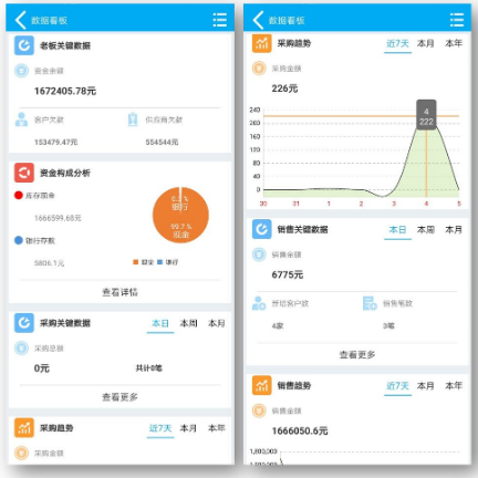 库存查询、账款统计、销售分析、单据查询、管理层应用。