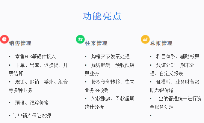 灵动经营、反应迅速过数据分析关注市场动态,经营决策有依有据;完善的物流处理能力和业务流程控制,极大的提高企业的运作效率;帮助企业实现从传统企业的事后管理变为有效的事中动态监控。